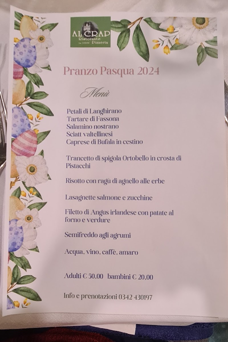 Welcome to Ristorante Al Crap, an Italian gem nestled in the picturesque hills of Tresivio, Italy. This charming eatery, located on Via Lago, offers an authentic culinary experience, combining exquisite flavors with warm hospitality. Guests rave about the superb service and the beautifully curated ambiance, which includes a cozy dining room perfect for unforgettable meals. As you explore the menu, expect to encounter a delightful array of traditional Italian dishes crafted with fresh, high-quality ingredients.
